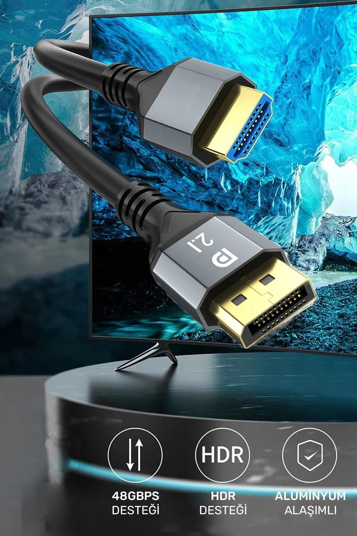 “16k Displayport Dp Görüntü Aktarım Kablosu 1.5 Metre Bilgisayar Laptop Projektör Uyumlu V 2.1” için ilk yorum yapan siz olun