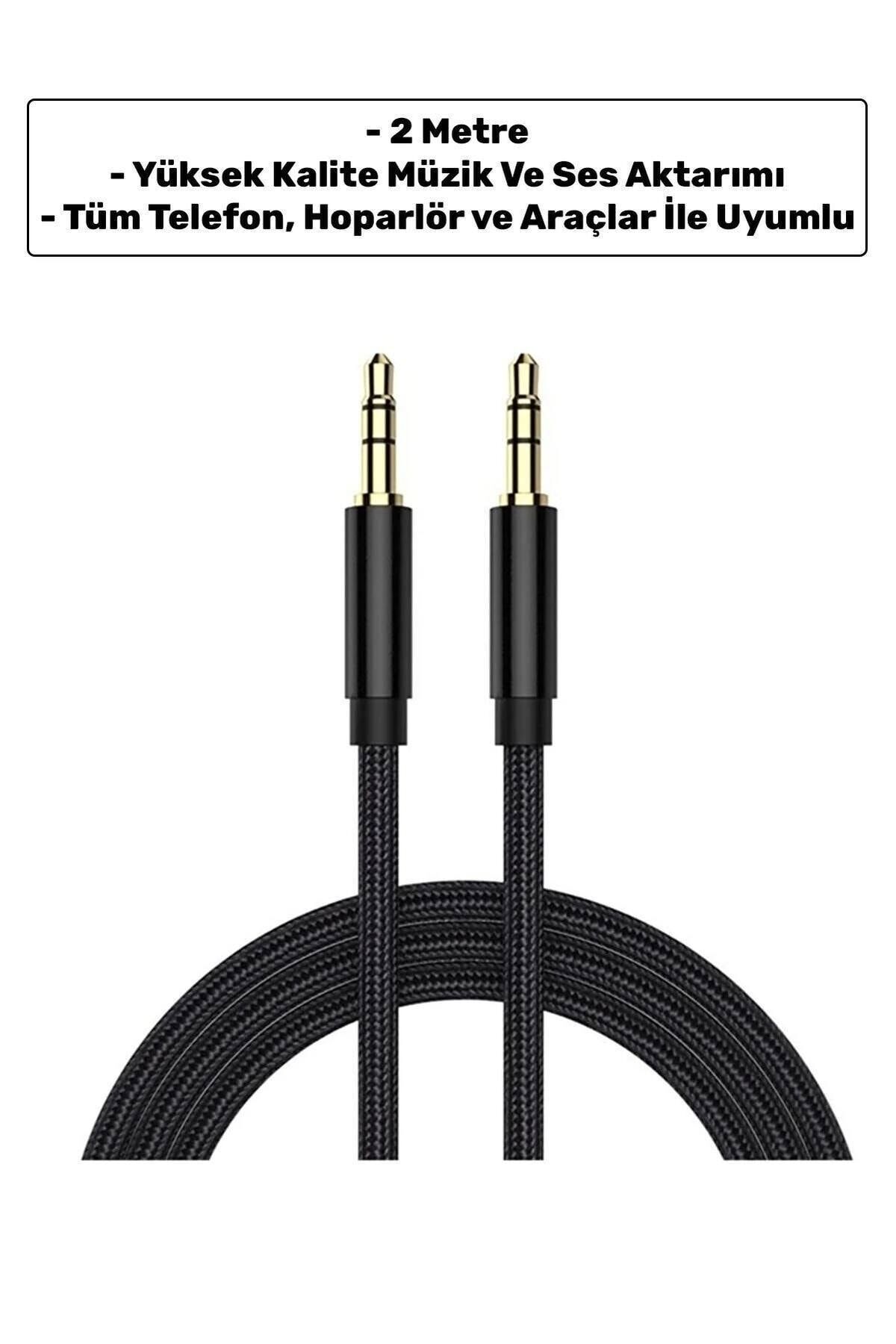 2m Aux To Aux 3.5mm Jack Girişli Yüksek Kalite Müzik Ve Ses Aktarıcı Kablo Siyah