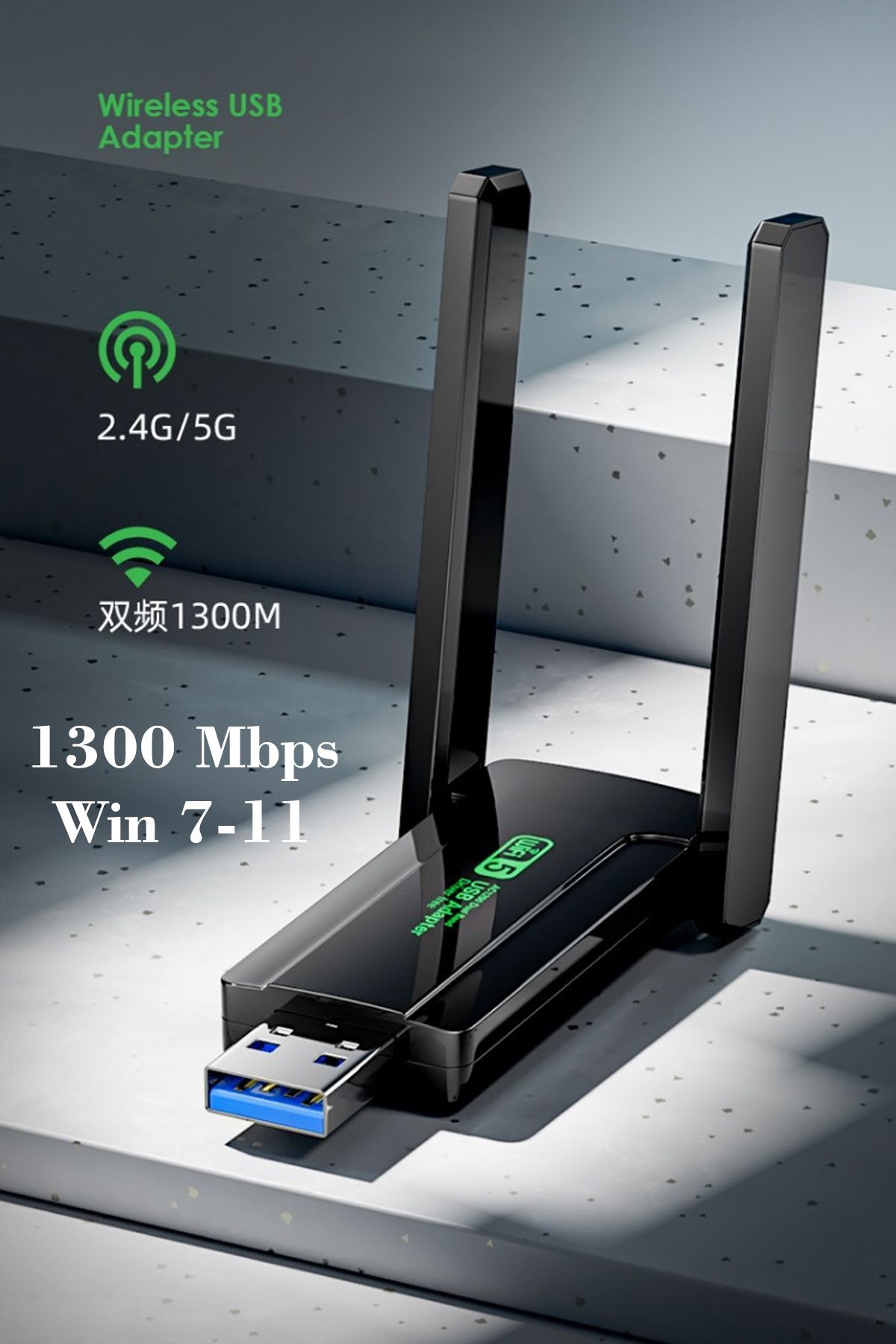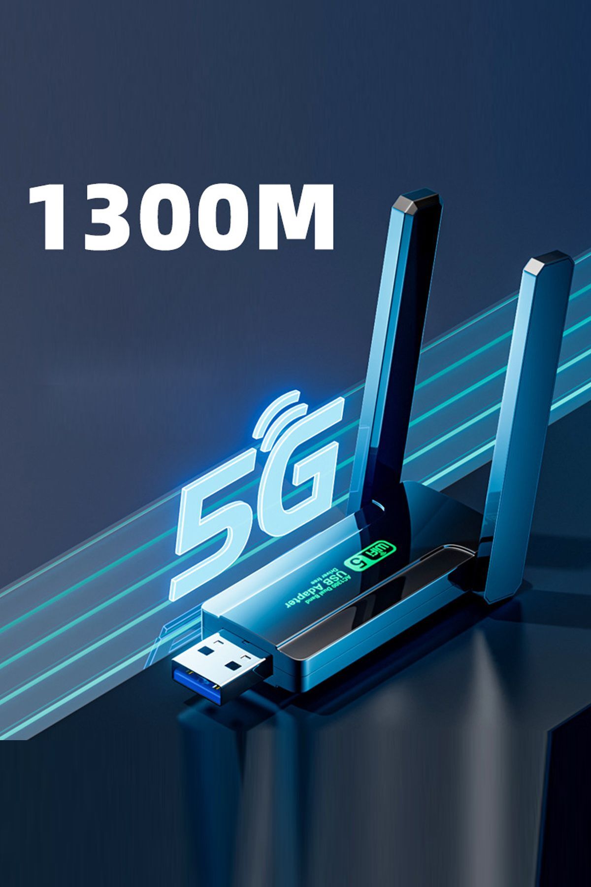 Yüksek Kalite Çift Antenli Ac1300 Mbps Dual(ÇİFT) Bant Usb 3.0 Adaptör Kablosuz Usb Wifi Adaptörü