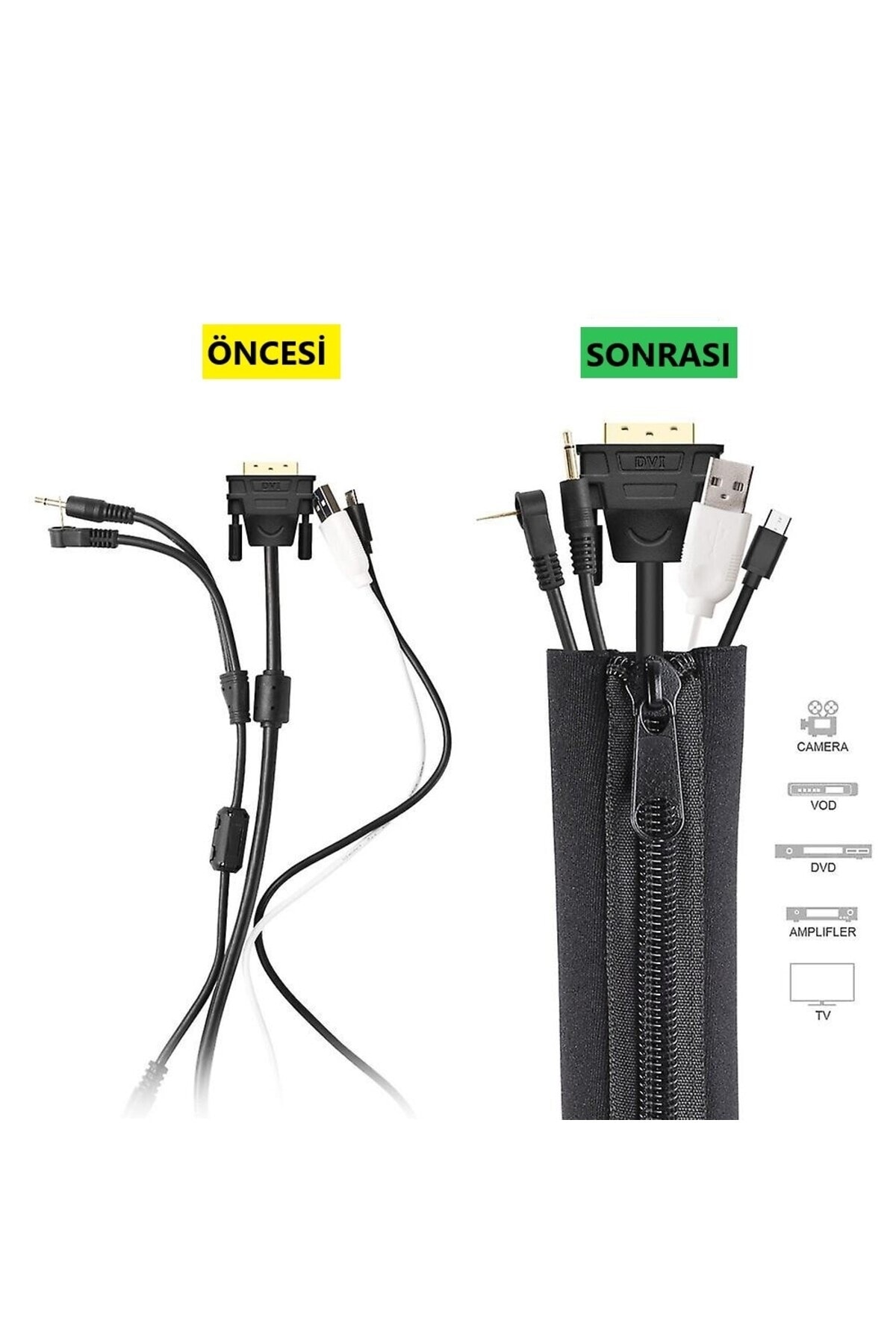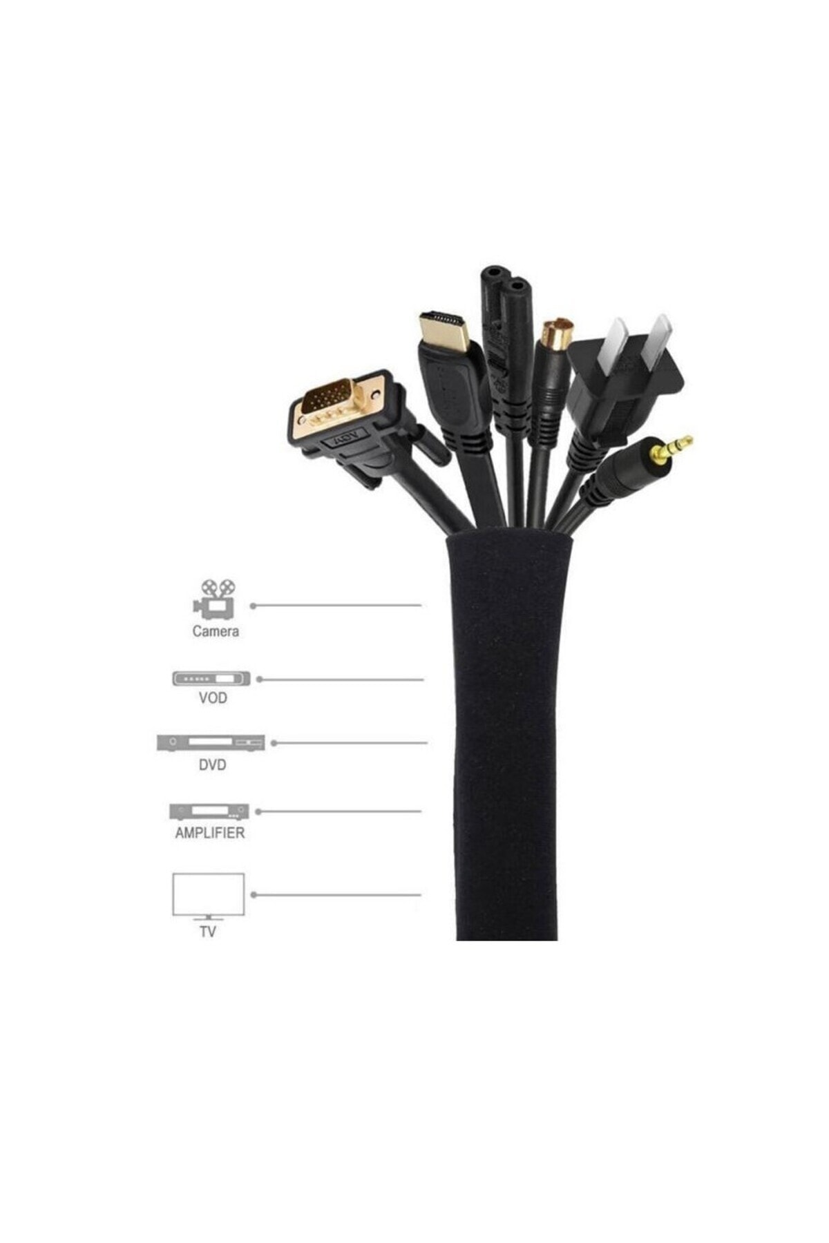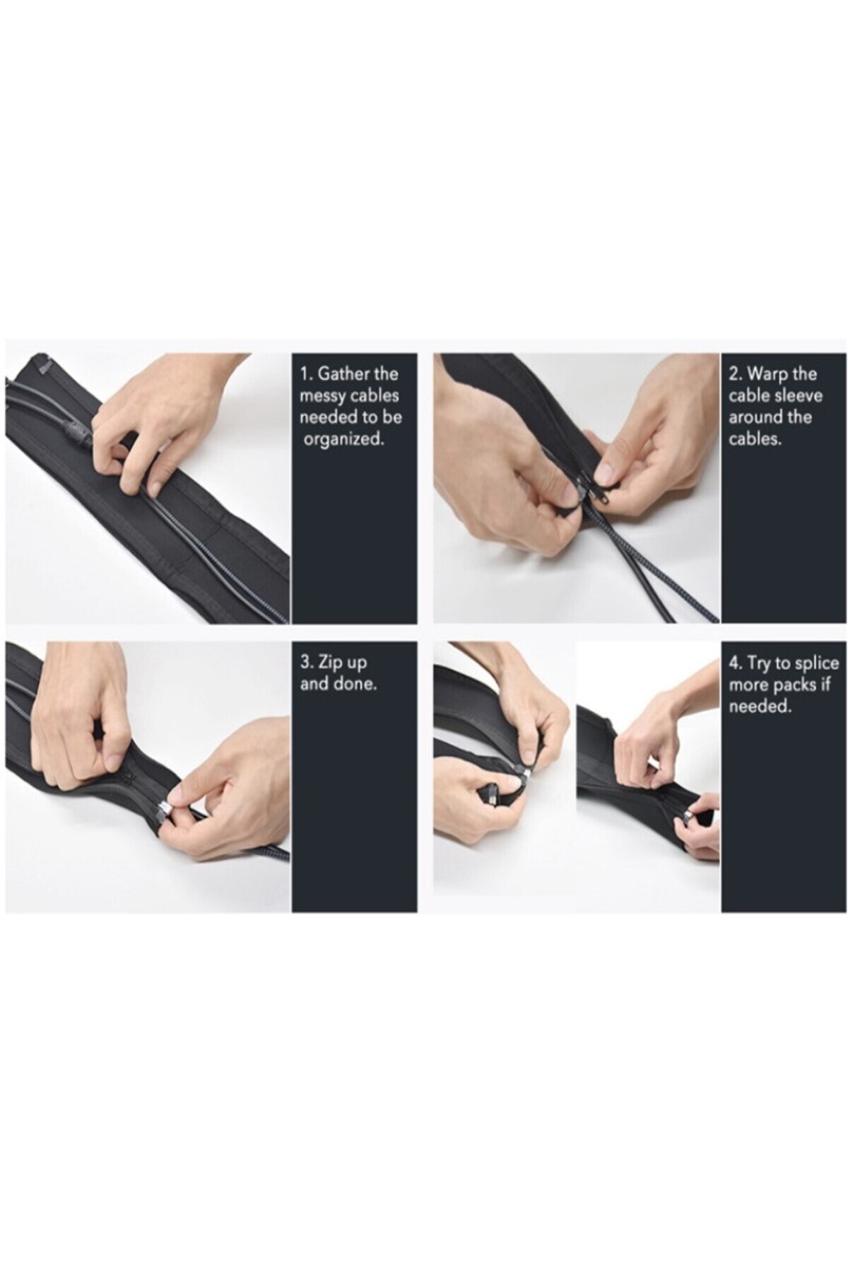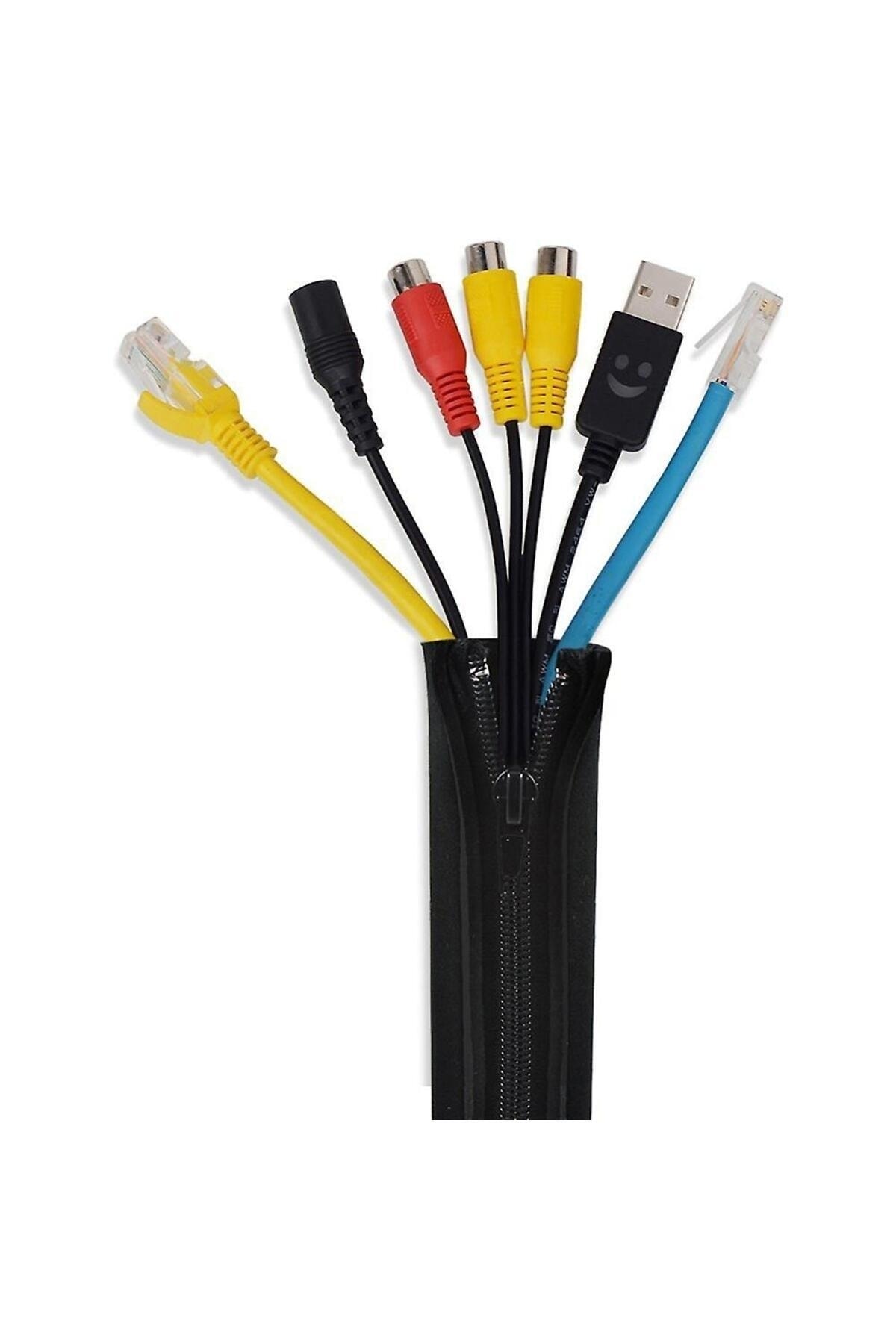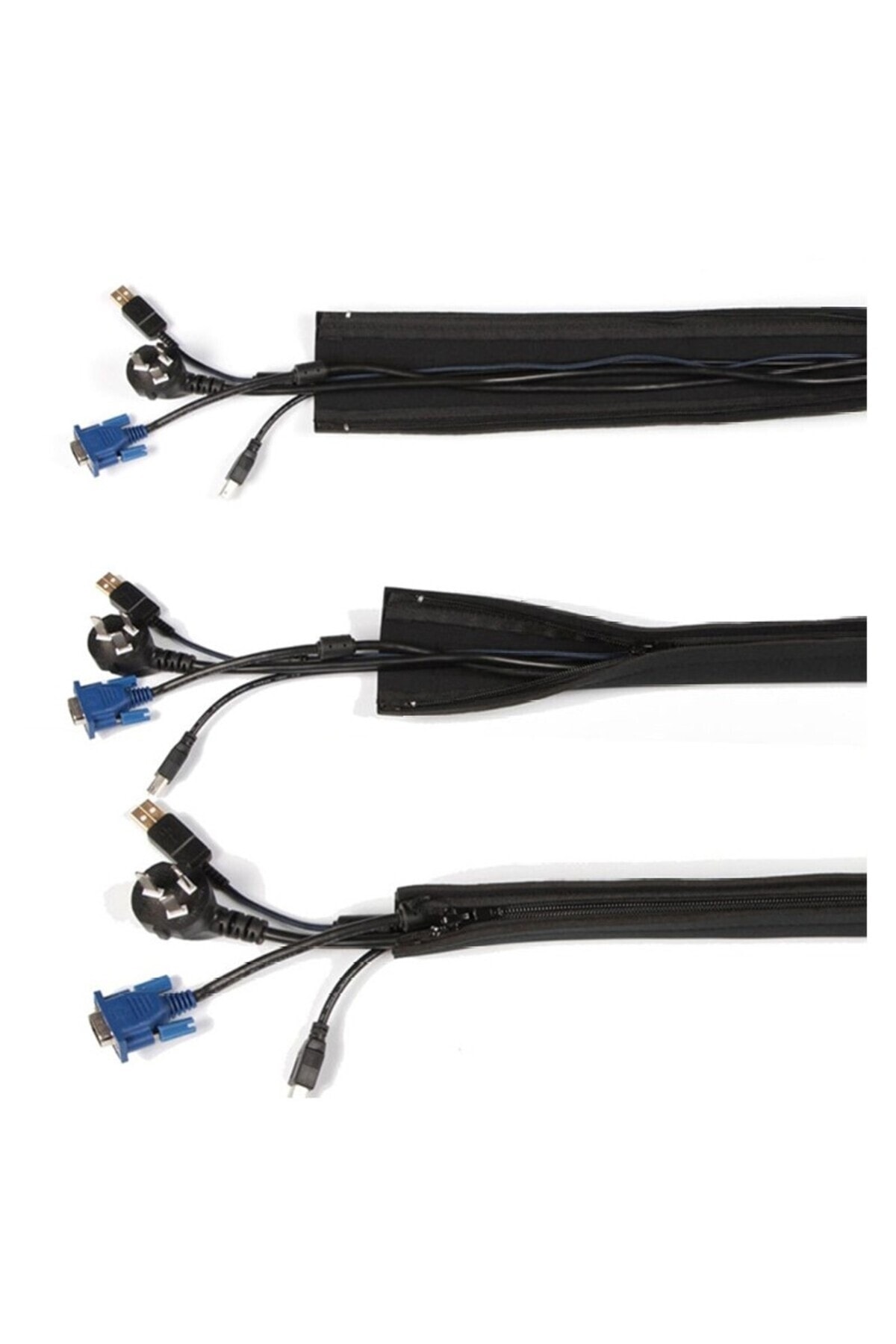 Fermuarlı 50cm Kablo Ev Ofis Dekoratif Kablo Düzenleyici Gizleyici Organizer Siyah
