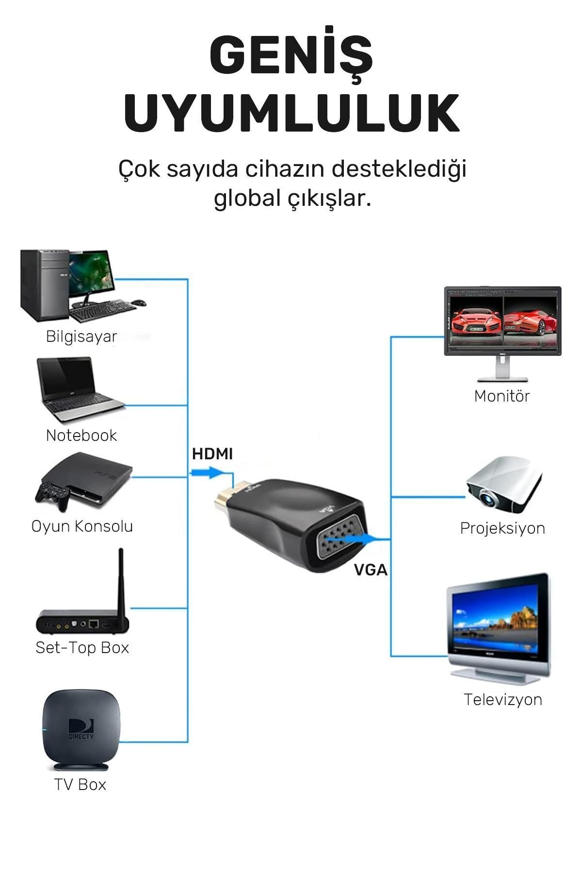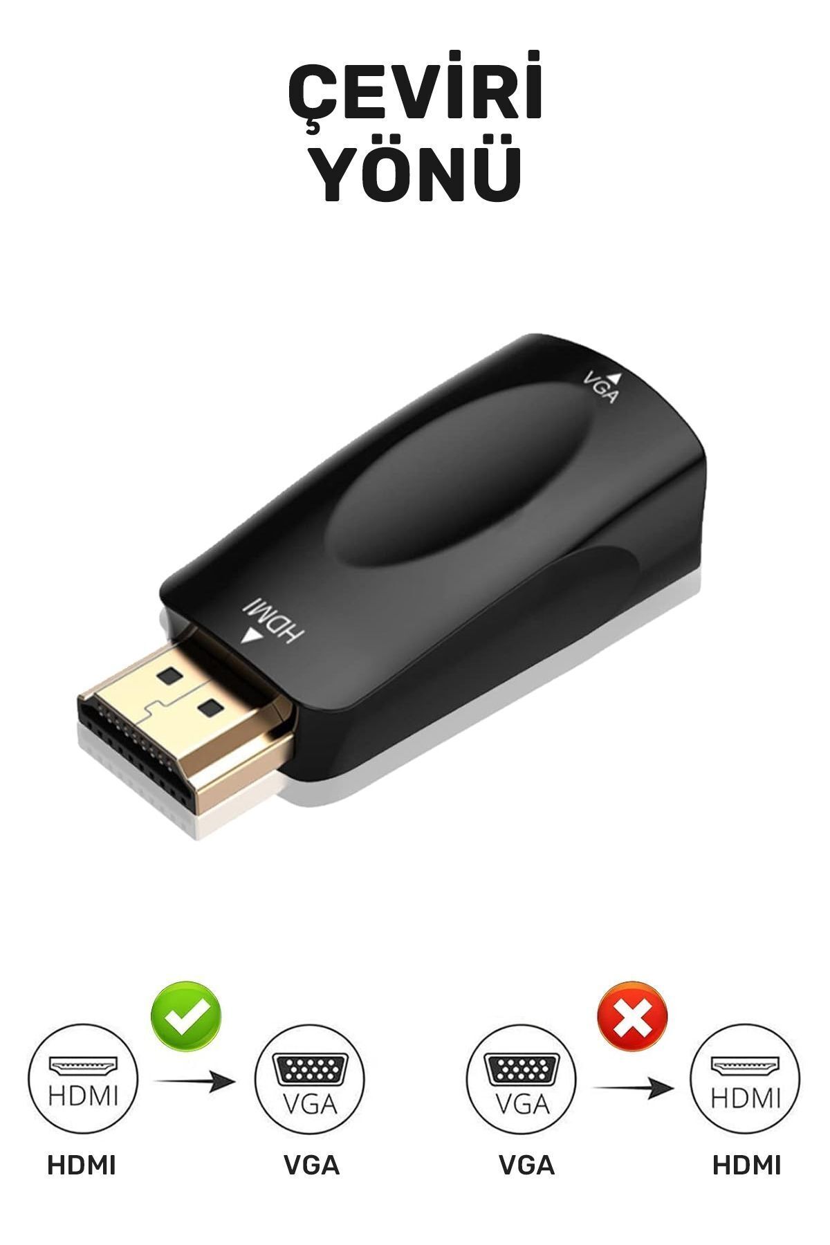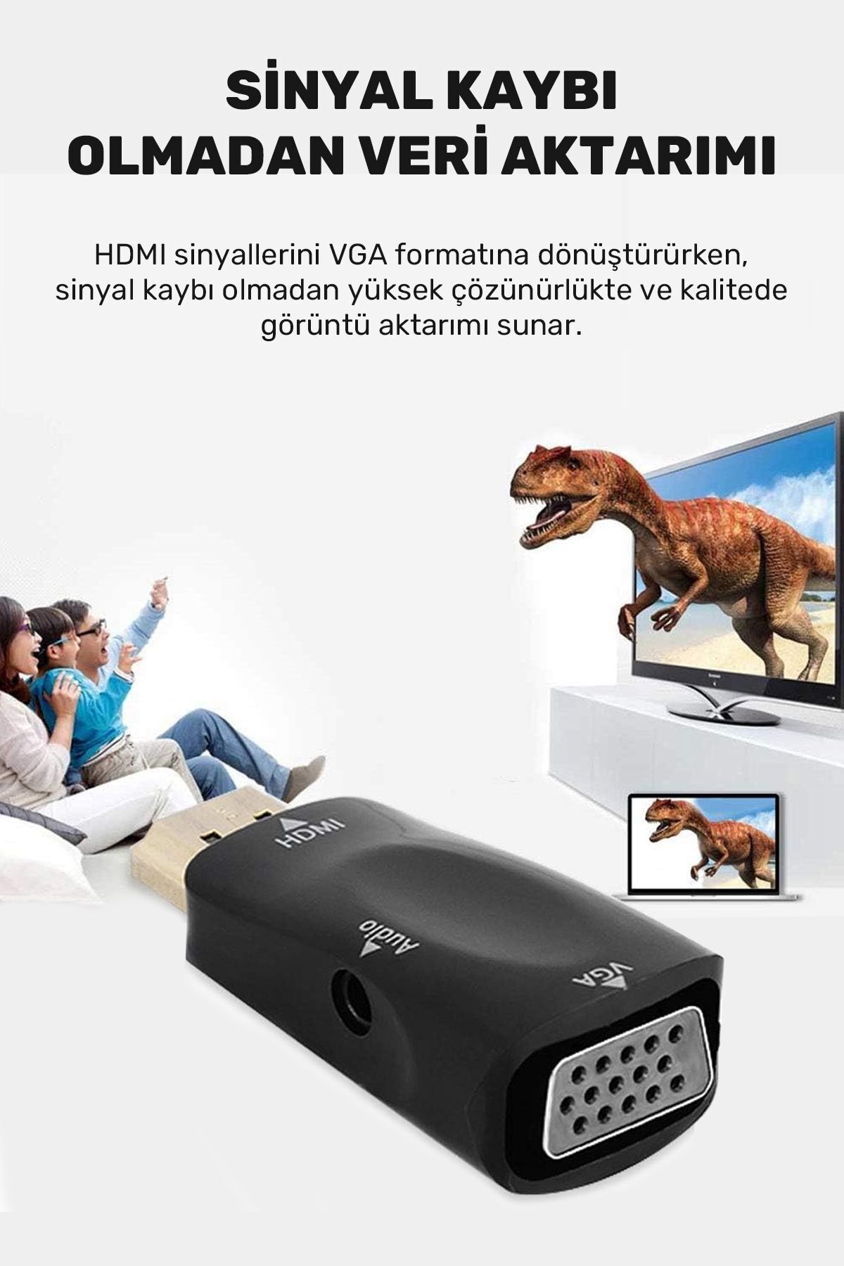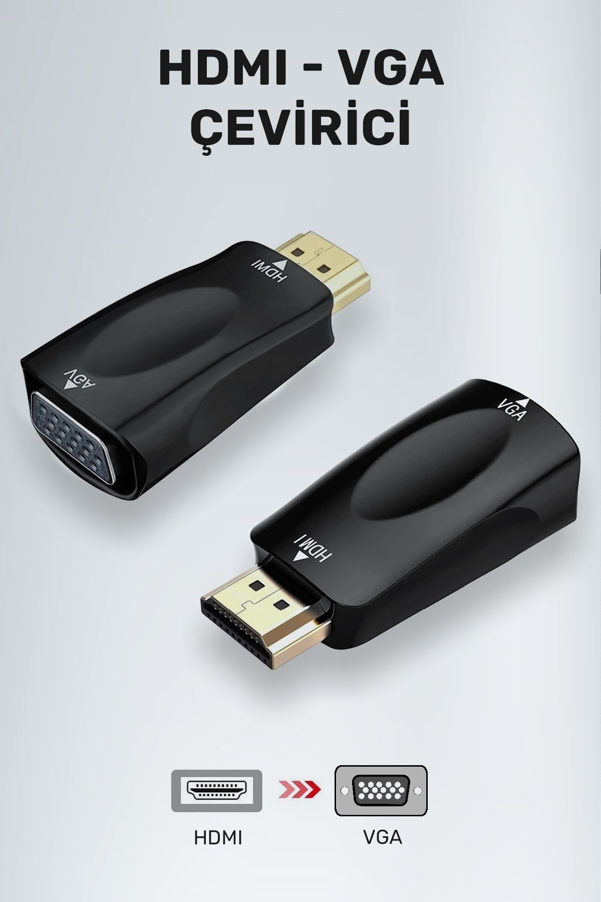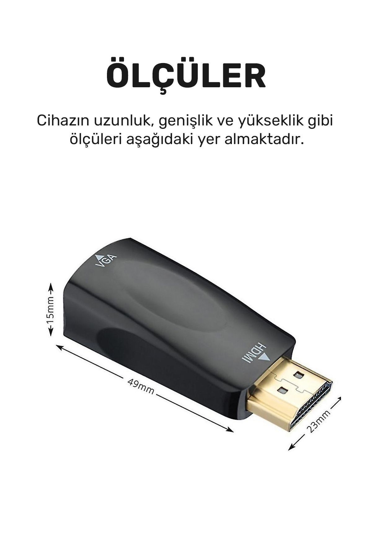 Hdmi To Vga Çevirici Kablosu Hdmı Dönüştürücü Kablo (MİCRO USB GÜÇ VE AUX KABLOLU) Siyah