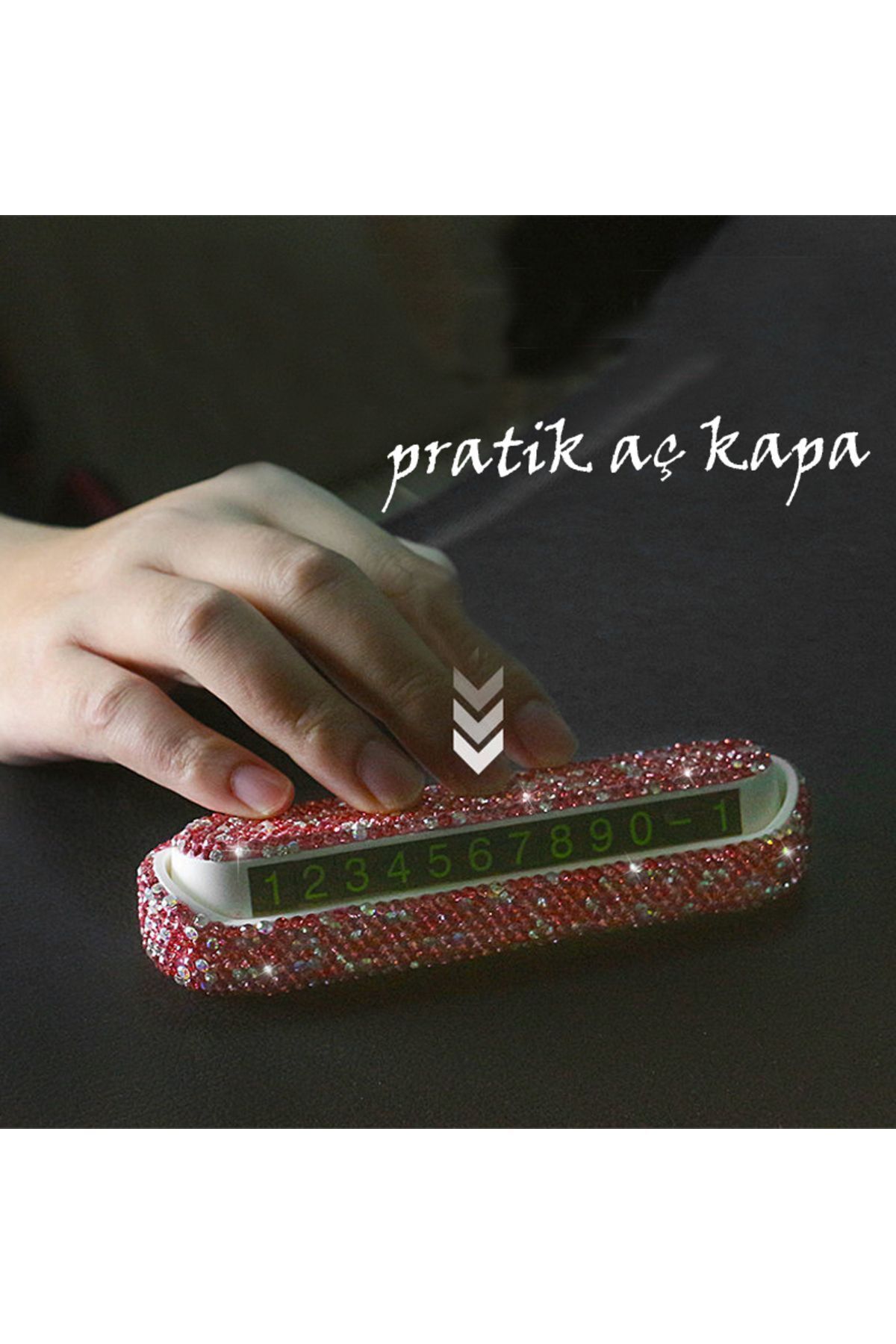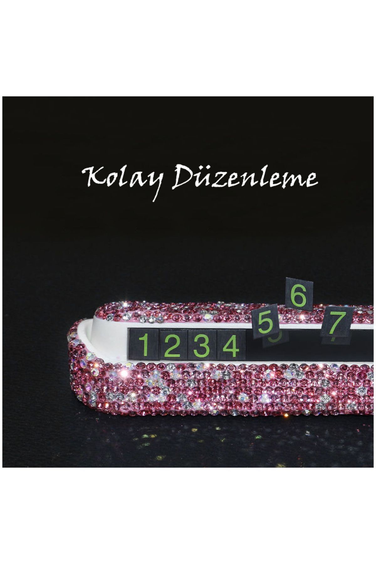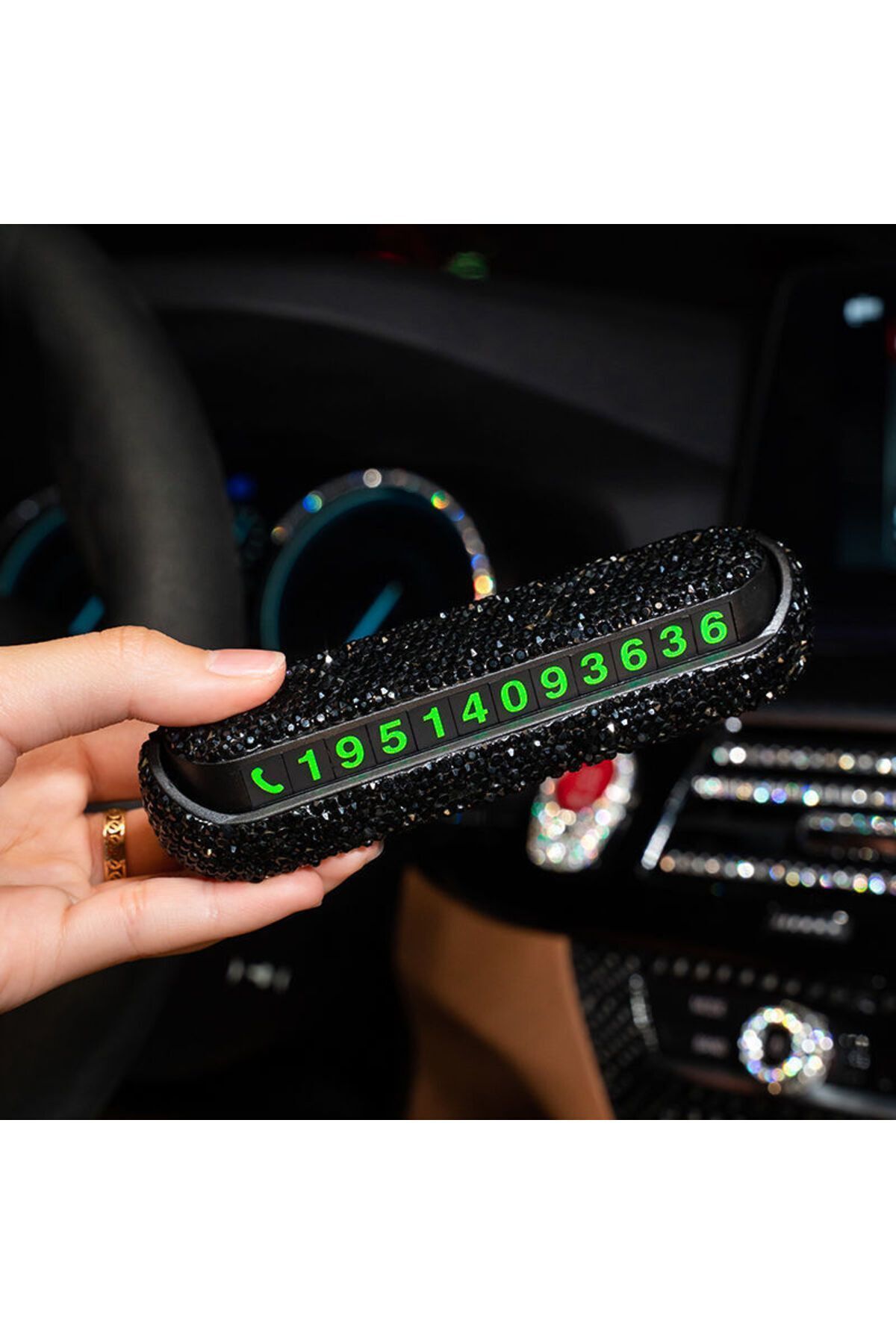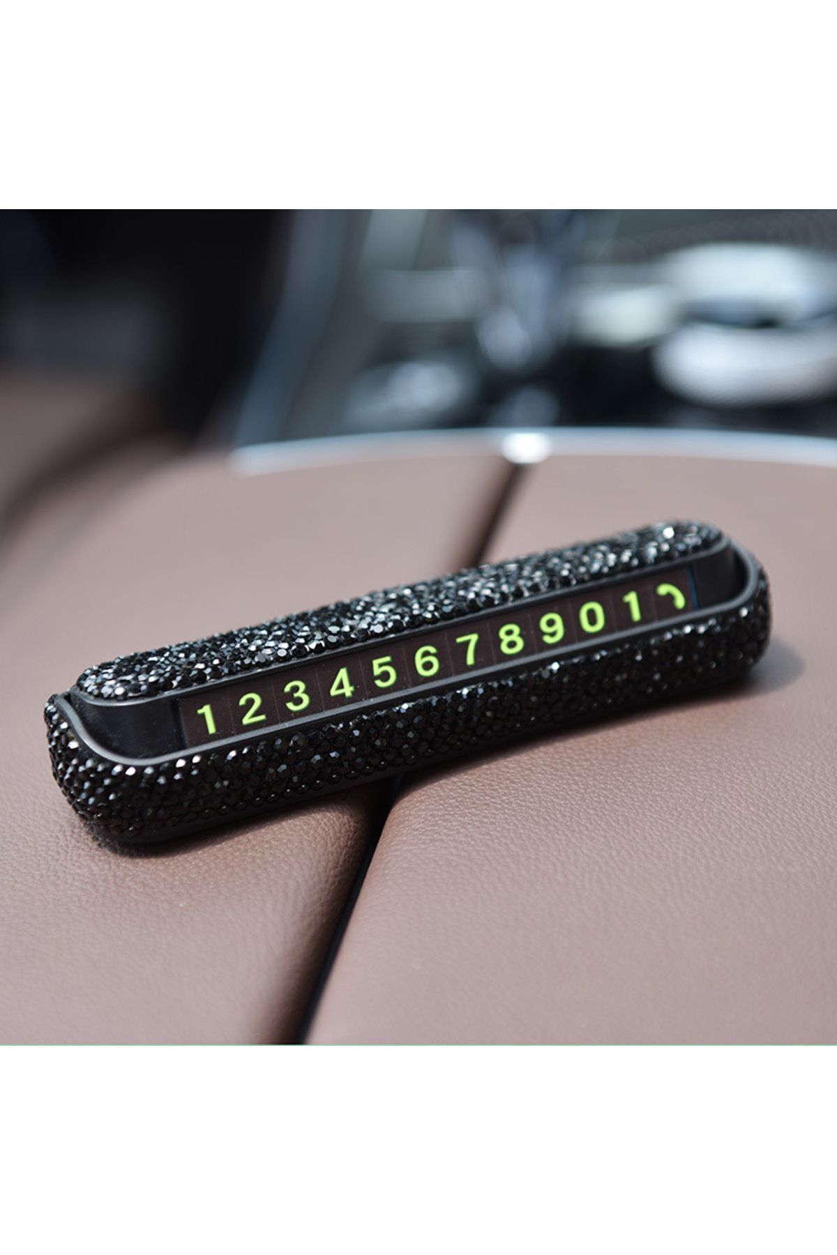 Taşlı Göz Alıcı Torpido Üstü Araç Park Numaratörü Kristal Siyah